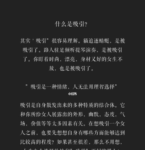 每个人都有自己独特的吸引力,无论是外表还是内在,都会让他人为之倾倒。但你是否知道自己的吸引力到底在哪里?本文将探讨吸引他人的关键因素,从内到外完美呈现,帮助你更好地认识自己,展现最真实、最迷人的自我。